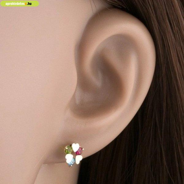 Ékszerek rovaton belül a(z) "585 arany fülbevaló - három lapos szív és kerek színes cirkó" című hirdetést látja. (fent)