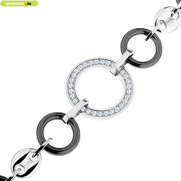 Ékszerek rovaton belül a(z) "Karkötő fekete kerámia és acél karikákból, átlátszó cirkóniá" című hirdetést látja. (fent)