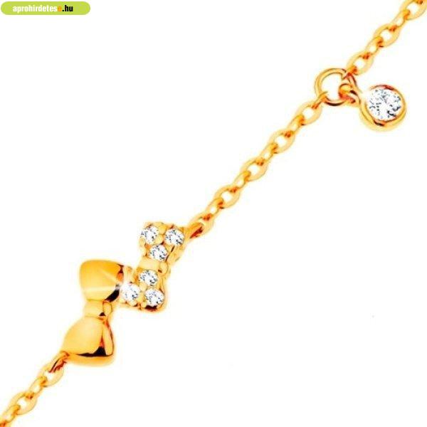 Ékszerek rovaton belül a(z) "Karkötő 14K sárga aranyból - két csillogó masni és átlátszó " című hirdetést látja. (fent)
