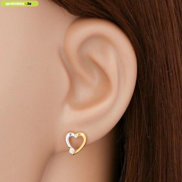 Briliáns fülbevaló 14K aranyból - szív körvonala átlátszó gy