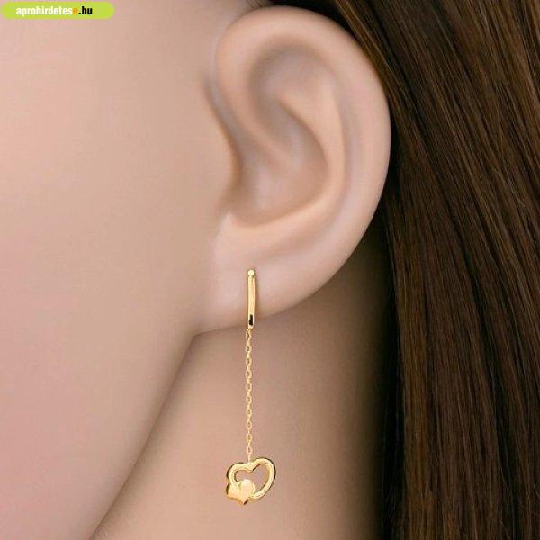 Fülbevaló sárga 14K aranyból - láncon függő szívek, stekkere