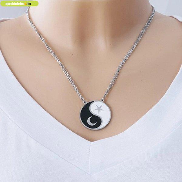 Acél nyakék, két lánc, fekete-fehér Jing és Jang szimbólum,