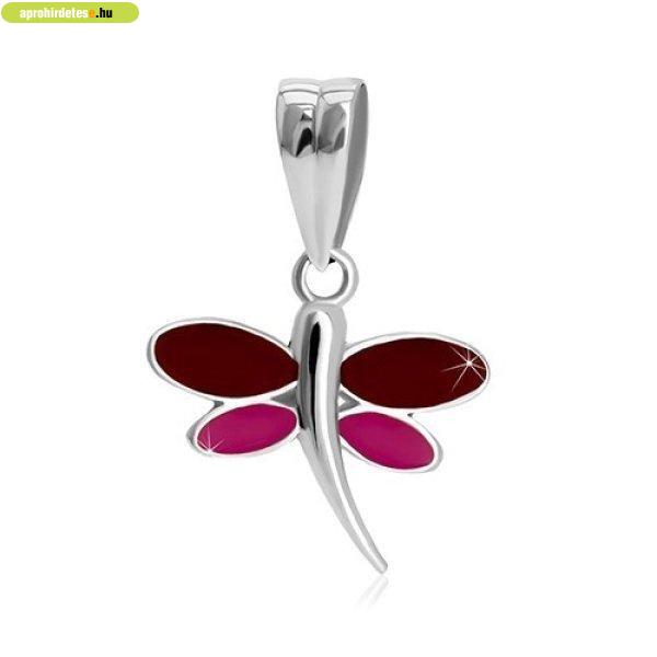 14K fehér arany medál - szitakötő bordó és lila fénymázzal a