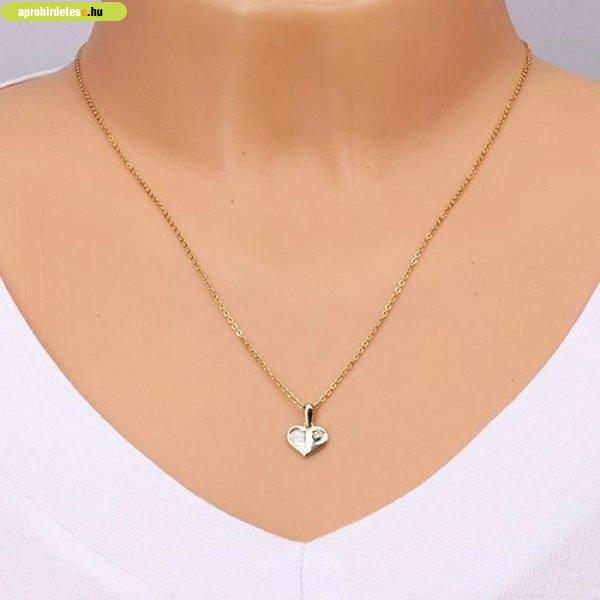 A 14K sárga arany medál szabályos szív alakú, amely két részre van osztva. Az
