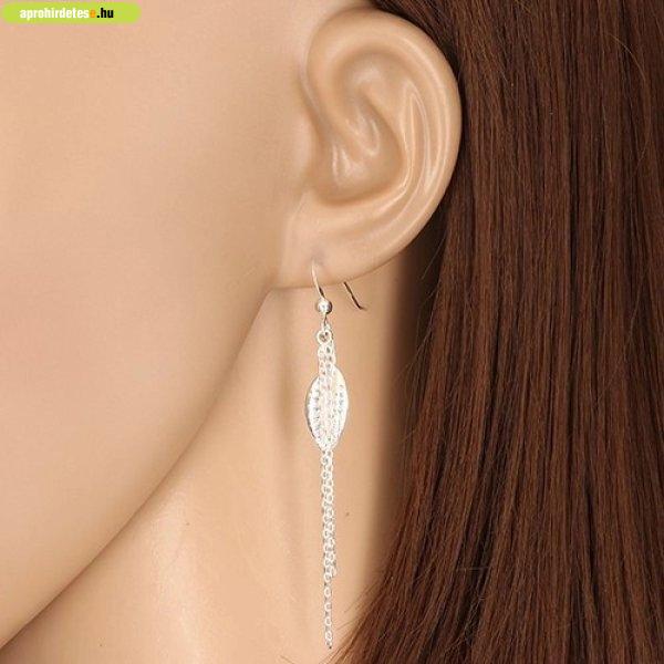 925 ezüst fülbevaló - díszes levél, két lánc, akasztós