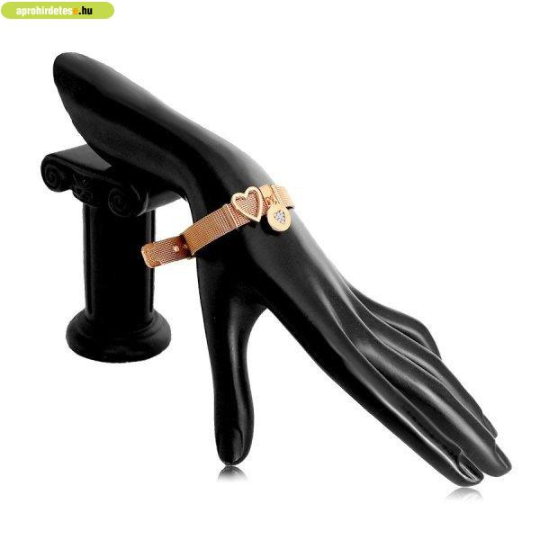 Acél karkötő réz színben, szívvel és lógó gyűrűvel, tiszta c