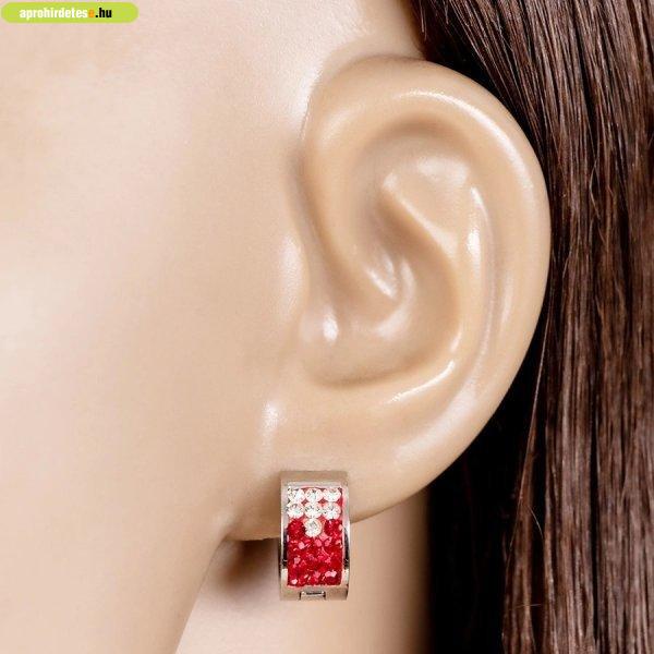 Acél fülbevaló - ezüst színű, piros csík kirakva tiszta és p