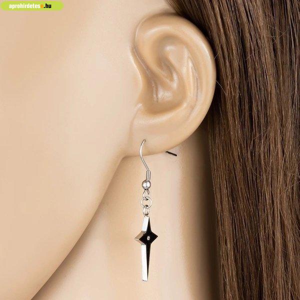 Acél fülbevaló fekete kereszt forma, fényes ezüst színű peremmel. A keresztnek a