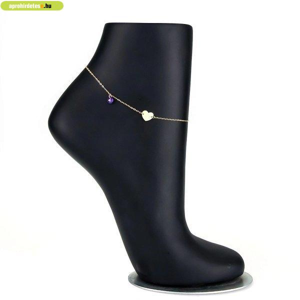 Ékszerek rovaton belül a(z) "14K sárga arany bokalánc - lapos szív, lila cirkónia" című hirdetést látja. (fent)