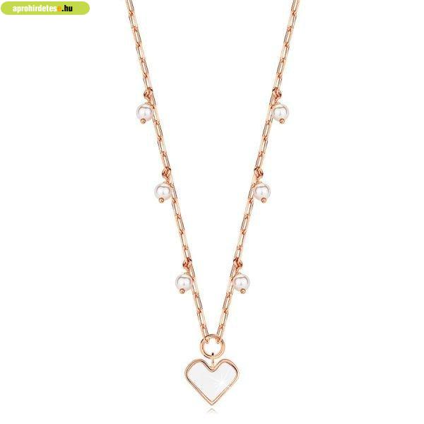 925 ezüst nyaklánc - rózsaarany színű, szívvel, szintetikus