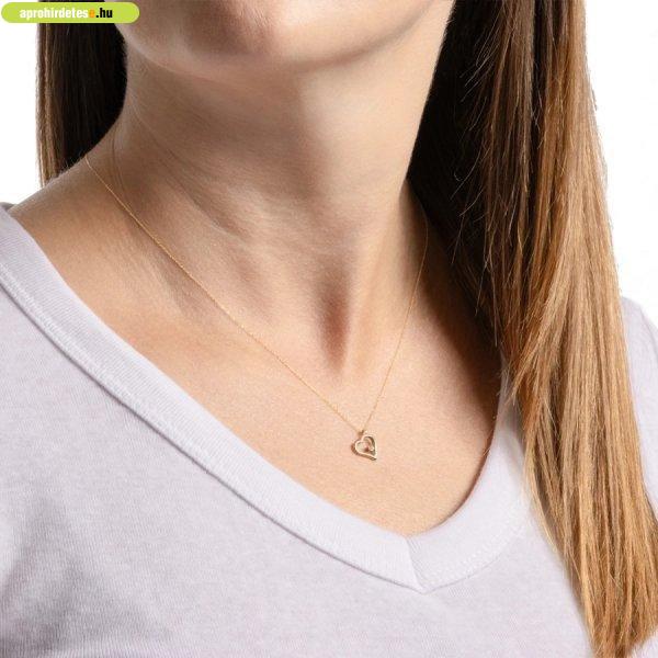 Gyémánt 14K sárga arany nyaklánc - szív átlátszó briliánssal
