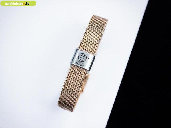 ötletünket egy nemesacél hálós karkötő, és egy gravírozható acél csúszó