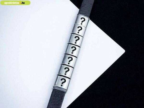 ötletünket egy fekete színű bőr karkötő, és egy gravírozható acél csúszó