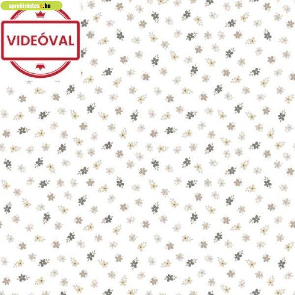 Happy fehér alapon barna-szürke apró virágos tapéta 14842