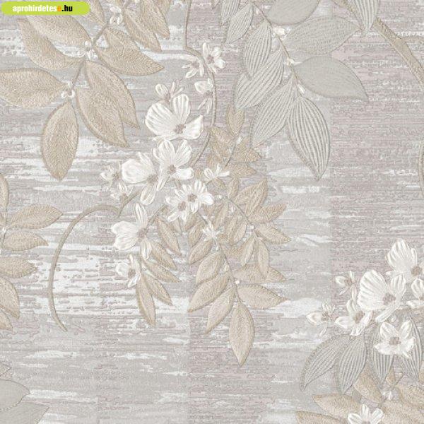 Tahiti ködszürke alapon barna-ekrü levél mintás tapéta 13317