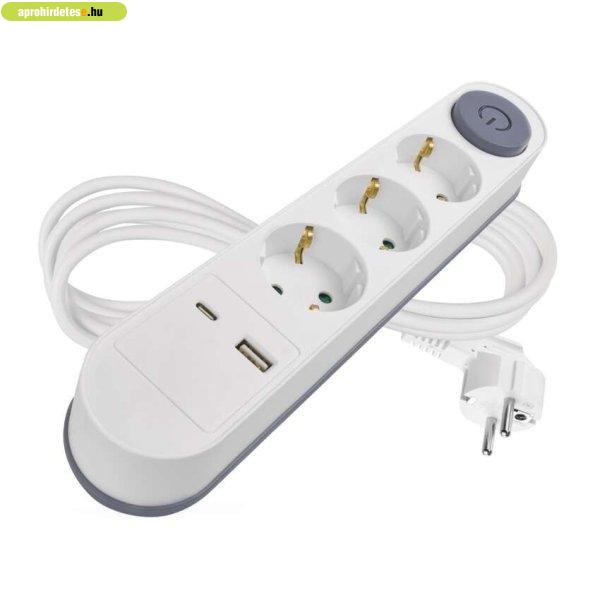 EMOS P1322PD, Hosszabbító 2 m / 3 aljzat / kapcsolós / fehér