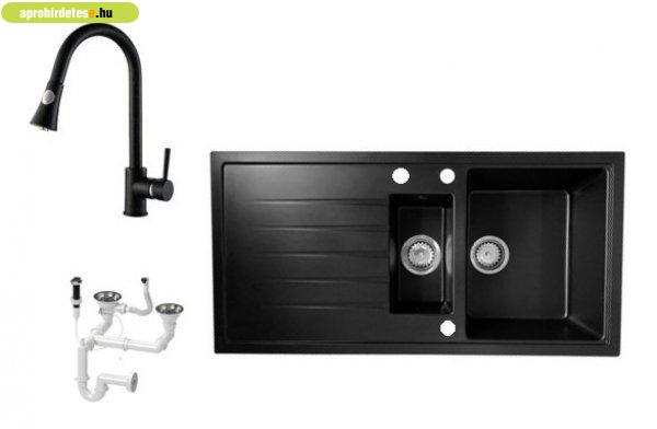 Solarys J995-50C Gránit Mosogató + Zuhanyfejes Csap + Dugóem