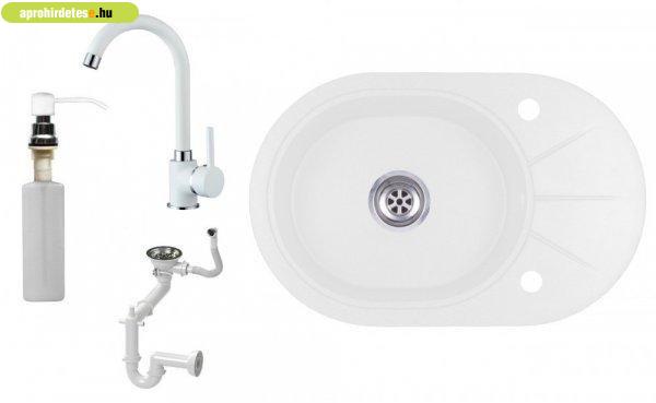 Laneo ZIA gránit mosogató szett fehér színben. Teljes készlet, ami tartalmazza a