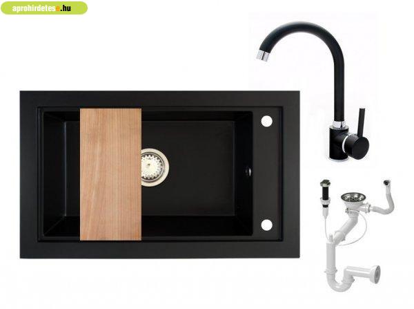 Gránit mosogató Nero Panama + magasított csaptelep + vágódes