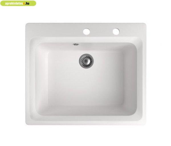 Gránit mosogató NERO Italia + szifon készlet (fehér)