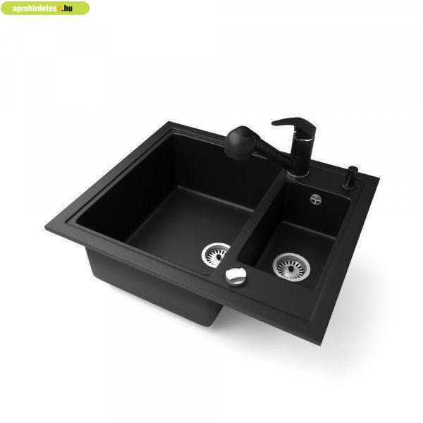 Gránit mosogató NERO Arriva + kihúzható zuhanyfejes Shower c