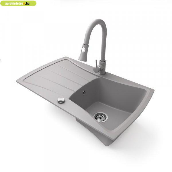 NERO Venezia gránit mosogató szürke színben. Egyedi és különleges formával