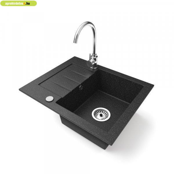 Gránit mosogatótálca NERO Monza + magasított króm csaptelep