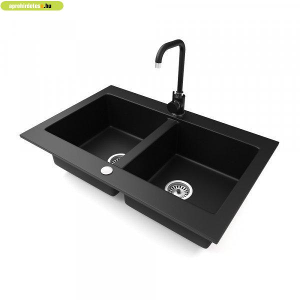 NERO Verso gránit mosogatótálca matt fekete színben csapteleppel. Kétmedencés,