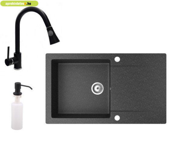 Gránit mosogató NERO Gold + kihúzható zuhanyfejes Snake csap
