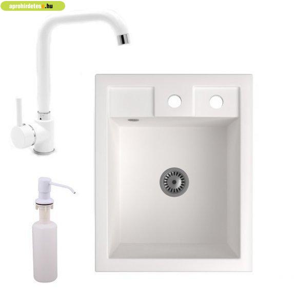szifonkészlettel és beépíthető mosogatószer adagolóval, fehér színben. Egyik