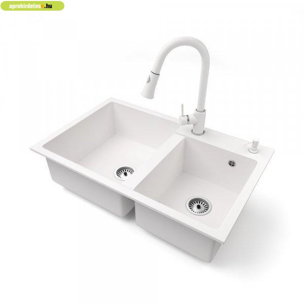 NERO Palazzo gránit mosogatótálca fehér színben csapteleppel és adagolóval. A
