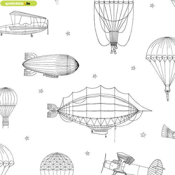 Fekete fehér léghajós gyermek tapéta KOD45827 Méret: 53cm x 10,05m (5,32 m2).