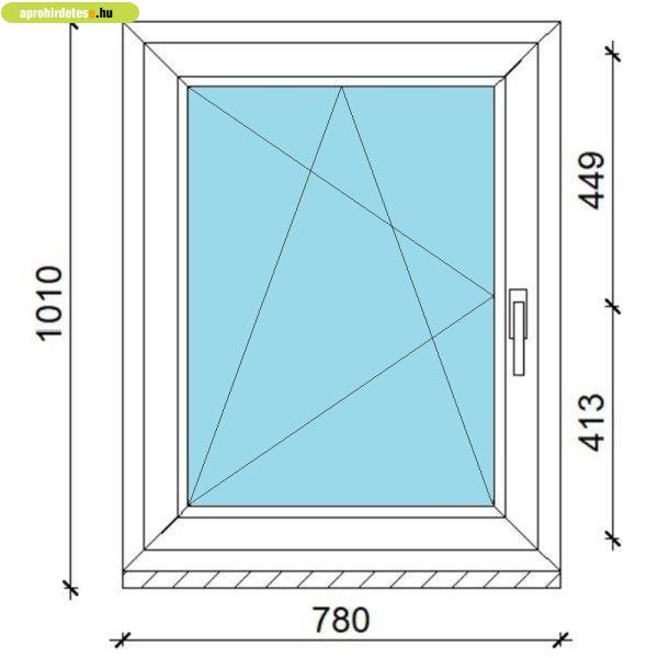 80x100 műanyag ablak, egyszárnyú, bukó/nyíló Gealan