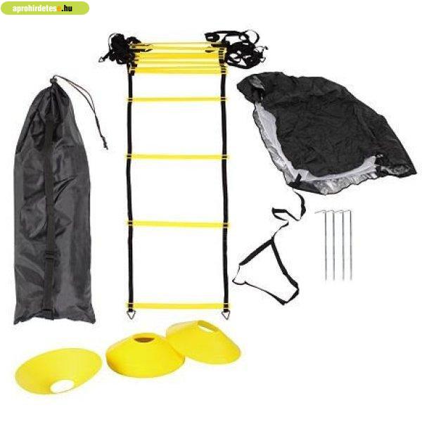 1 db agility létra, 12 db padlójelző, 1 db ellenállás-ejtőernyő - anyag: