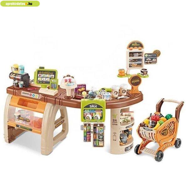 Számos kiegészítővel. Bevásárlókocsival, mérleggel és kódolvasóval. Gyorsan