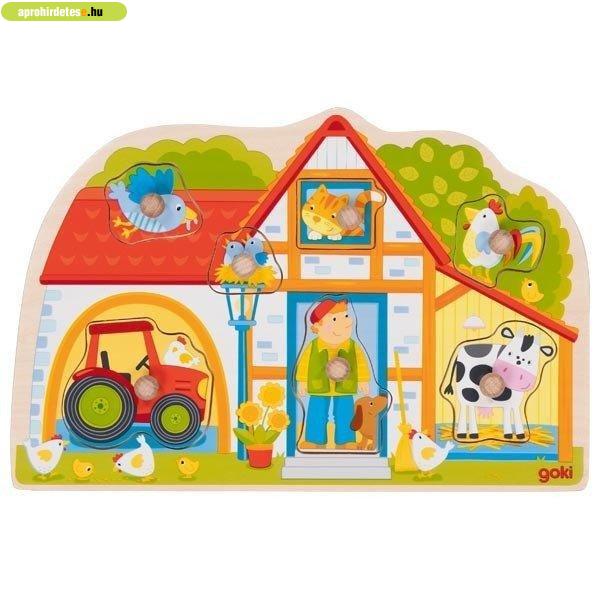 Gyerekjáték rovaton belül a(z) "Fogantyús fa kirakó, tanya" című hirdetést látja. (fent)