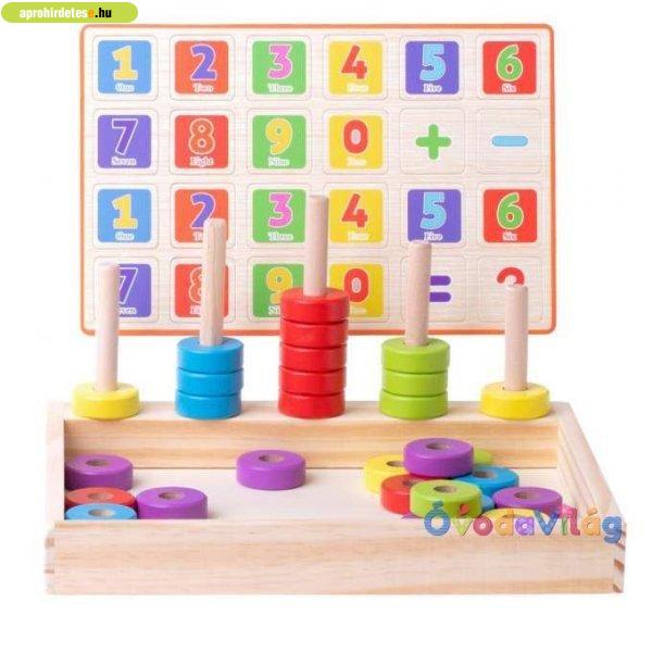 Matematikai oktató játék jellemzői: Anyaga: fa Csomagolási mérete: 24 x 21,7 x 4