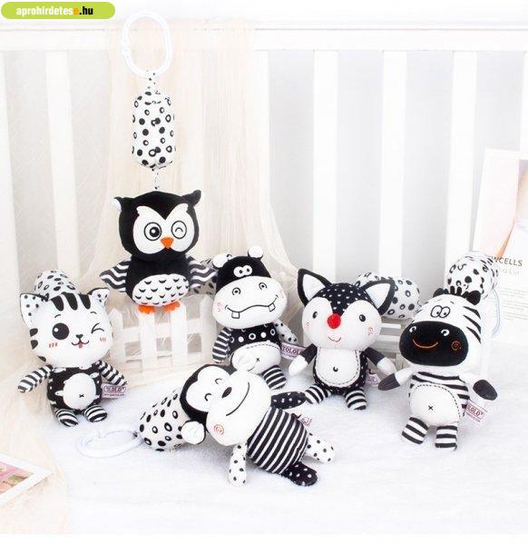 Kontrasztos fekete-fehér plüss csörgős játék babakocsira, ki