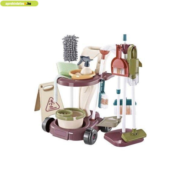 18 részes játék takarítószett gyerekeknek, működő porszívóval, kerekes kocsival