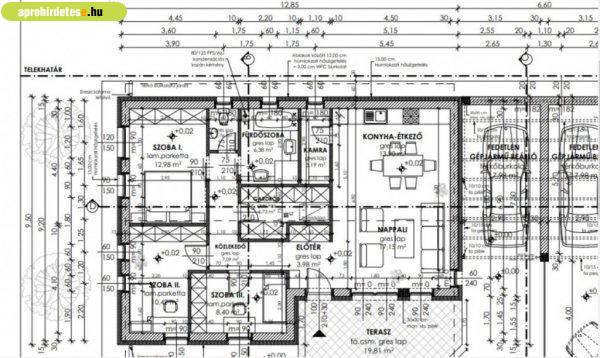 beállóval) ikerház fél 600 nm-es telekkel. A ház kétlakásos ikerház. A házak egy