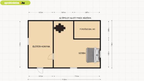 új tulajdonos izlésére van bízva. A belső térben előtér, konyha, szoba,