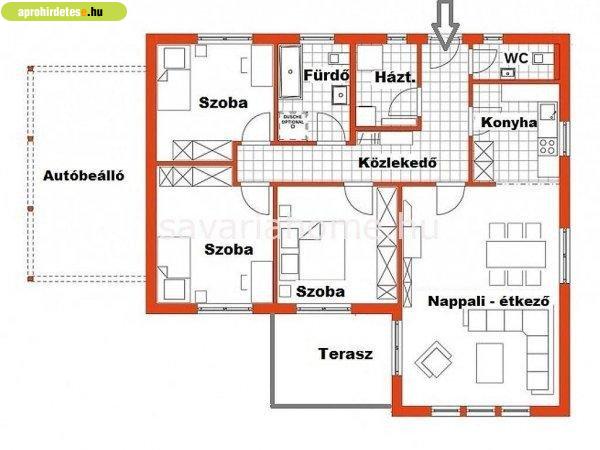 tégla építésű családi ház, 13nm-es terasszal, autóbeállóval, 82,5M Ft-os áron
