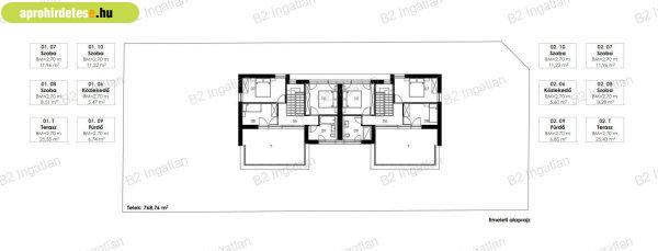 136 négyzetméteres lakásokkal terasszal ésegyállásos garázsokkal.MODERN STÍLUSÚ