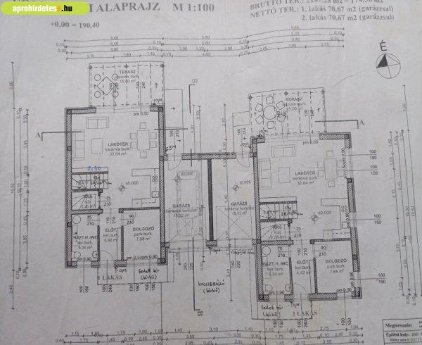 kertkapcsolattal, garázzsal.Kialakítása:-földszinten: előtér, dolgozószoba,