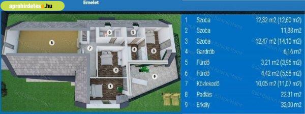 gardróbbal, külön WC-vel, teraszokkal, dupla garázzsal, kényelmes életteret