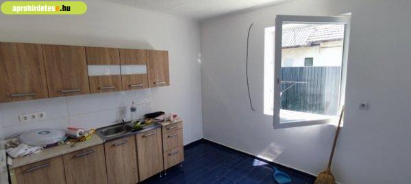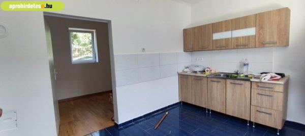 beállítható. Melegvizet villany boyler szolgáltatja. Konyha bútor a ház