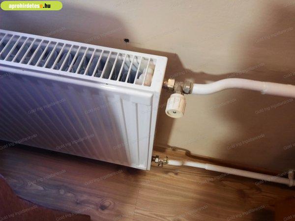 központi fűtés lapradiátorokkal és egy szilrádtüzelésű kazánnal. A meleg vizet