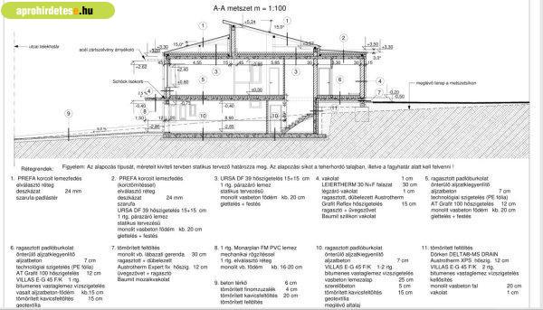 terasszal, a pince szint teljes értékű, teljes belmagasságú, vasalt betonból