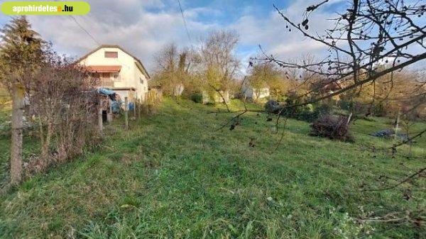 m2-es, enyhén lejtős, körbekerített, és gyümölcsfák is vannak rajta. A környék