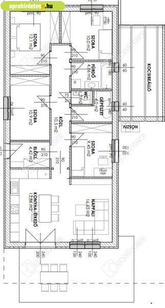 terasszal, + 18 m2 kocsibeállóval. Nappali-konyha-étkező mellett négy hálószoba